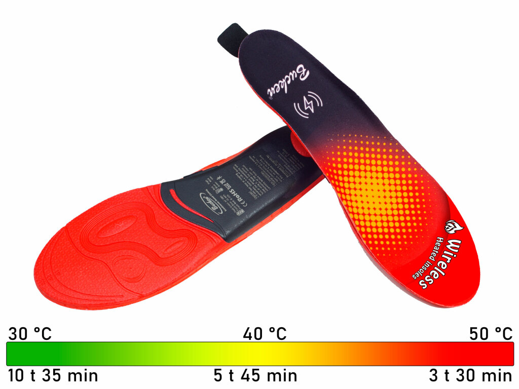 Beroende på vald värmenivå kan sulorna hålla dina fötter varma i 3 till 10 timmar. De är vattenresistenta, slitstarka och diskreta. Allt är integrerat direkt i sulan, så du slipper störande kablar och externa batteripack.